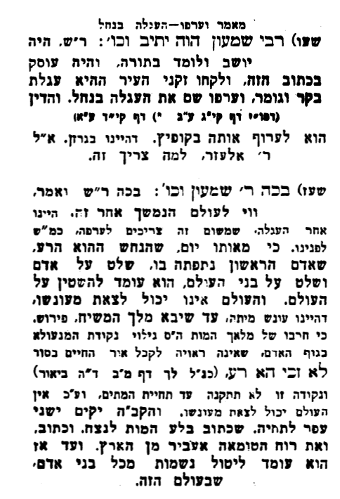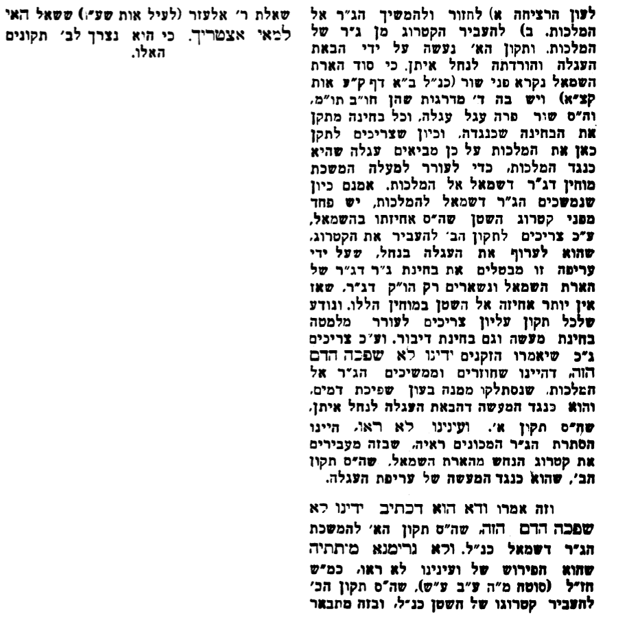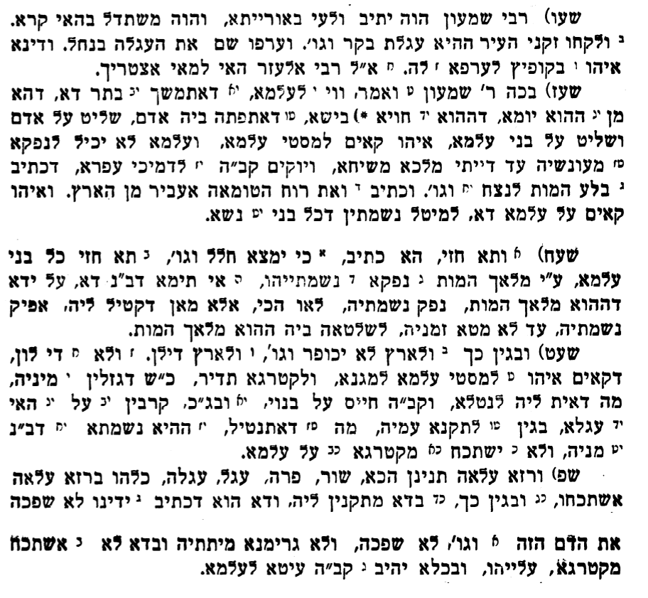כִּי־יִמָּצֵ֣א חָלָ֗ל בָּאֲדָמָה֙ אֲשֶׁר֩ יְהֹוָ֨"ה אֱלֹהֶ֜יךָ נֹתֵ֤ן לְךָ֙ לְרִשְׁתָּ֔הּ נֹפֵ֖ל בַּשָּׂדֶ֑"ה לֹ֥א נוֹדַ֖ע מִ֥"י הִכָּֽהוּ׃ וְיָצְא֥וּ זְקֵנֶ֖יךָ וְשֹׁפְטֶ֑יךָ וּמָדְדוּ֙ אֶל־הֶ֣עָרִ֔ים אֲשֶׁ֖ר סְבִיבֹ֥ת הֶחָלָֽל׃ וְהָיָ֣ה הָעִ֔יר הַקְּרֹבָ֖ה אֶל־הֶחָלָ֑ל וְלָֽקְח֡וּ זִקְנֵי֩ הָעִ֨יר הַהִ֜וא עֶגְלַ֣ת בָּקָ֗ר אֲשֶׁ֤ר לֹֽא־עֻבַּד֙ בָּ֔הּ אֲשֶׁ֥ר לֹא־מָשְׁכָ֖ה בְּעֹֽל׃ וְהוֹרִ֡דוּ זִקְנֵי֩ הָעִ֨יר הַהִ֤וא אֶת־הָֽעֶגְלָה֙ אֶל־נַ֣חַל אֵיתָ֔ן אֲשֶׁ֛ר לֹא־יֵעָבֵ֥ד בּ֖וֹ וְלֹ֣א יִזָּרֵ֑עַ וְעָֽרְפוּ־שָׁ֥ם אֶת־הָעֶגְלָ֖ה בַּנָּֽחַל׃ וְנִגְּשׁ֣וּ הַכֹּהֲנִים֮ בְּנֵ֣י לֵוִי֒ כִּ֣י בָ֗ם בָּחַ֞ר יְהֹוָ֤"ה אֱלֹהֶ֙יךָ֙ לְשָׁ֣רְת֔וֹ וּלְבָרֵ֖ךְ בְּשֵׁ֣ם יְהֹוָ֑"ה וְעַל־פִּיהֶ֥ם יִהְיֶ֖ה כׇּל־רִ֥יב וְכׇל־נָֽגַע׃ וְכֹ֗ל זִקְנֵי֙ הָעִ֣יר הַהִ֔וא הַקְּרֹבִ֖ים אֶל־הֶחָלָ֑ל יִרְחֲצוּ֙ אֶת־יְדֵיהֶ֔ם עַל־הָעֶגְלָ֖ה הָעֲרוּפָ֥ה בַנָּֽחַל׃ וְעָנ֖וּ וְאָמְר֑וּ יָדֵ֗ינוּ לֹ֤א שָֽׁפְכוּ֙ אֶת־הַדָּ֣ם הַזֶּ֔ה וְעֵינֵ֖ינוּ לֹ֥א רָאֽוּ׃ כַּפֵּר֩ לְעַמְּךָ֨ יִשְׂרָאֵ֤ל אֲשֶׁר־פָּדִ֙יתָ֙ יְהֹוָ֔"ה וְאַל־תִּתֵּן֙ דָּ֣ם נָקִ֔י בְּקֶ֖רֶב עַמְּךָ֣ יִשְׂרָאֵ֑ל וְנִכַּפֵּ֥ר לָהֶ֖ם הַדָּֽם׃ וְאַתָּ֗ה תְּבַעֵ֛ר הַדָּ֥ם הַנָּקִ֖י מִקִּרְבֶּ֑ךָ כִּֽי־תַעֲשֶׂ֥ה הַיָּשָׁ֖ר בְּעֵינֵ֥י יְהֹוָֽ"ה׃